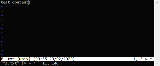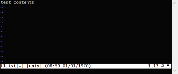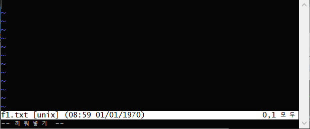 단, 주의할 점은 이 상태에선 바로 내용 입력이 되지 않고 반드시 i(insert)키를 눌러야 파일 안에 내용을 입력할 수 있는 상태가 됩니다.