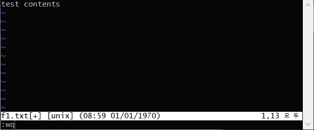 이럴 땐 :wq를 입력합니다.(콜론을 반드시 먼저 입력해야하고 그냥 wq를 입력하면 안됩니다.)