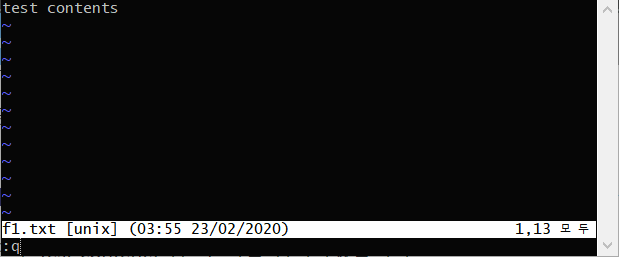 3. 파일 확인이 끝났으면 :q를 입력한 후 다시 메인 콘솔창으로 나옵니다.