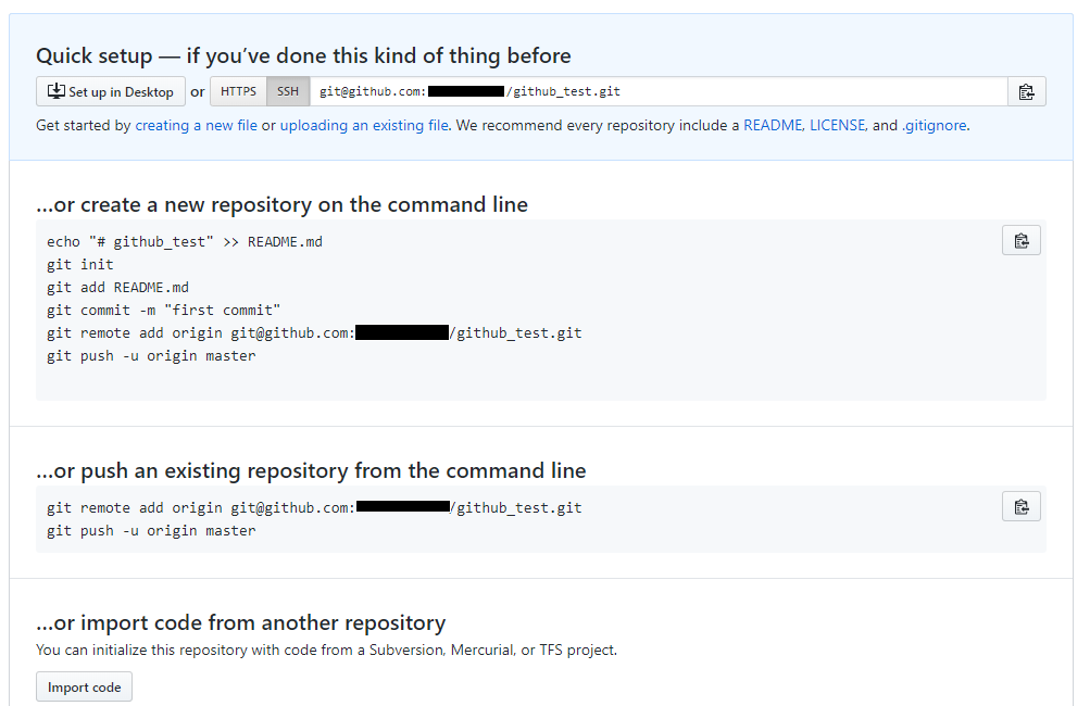 그러면 아래와 같은 주소가 뜰텐데 HTTPS가 아닌 SSH 주소를 클릭합니다.