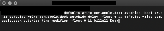 defaults write com.apple.dock autohide -bool true && defaults write com.apple.dock autohide-delay -float 0 && defaults write com.apple.dock autohide-time-modifier -float 0 && killall Dock