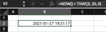 위 수식은 현재 날짜+시간 데이터에다가 3시간 20분만큼을 더 더한다는 뜻입니다.