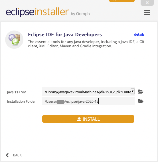 설치파일을 실행시키면 다음과 같은 화면이 나오는데 Eclipse Installer.app을 클릭하여 설치를 시작합시다.