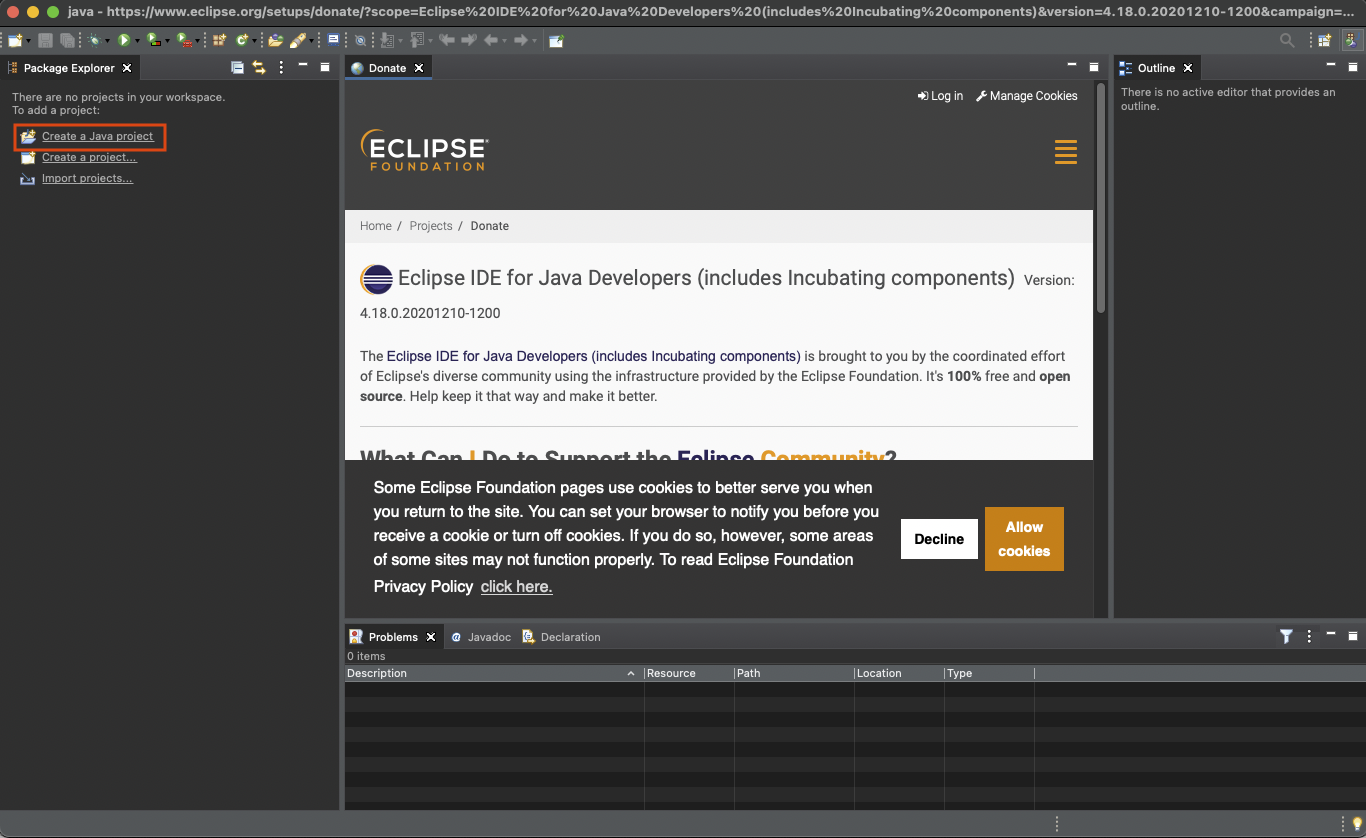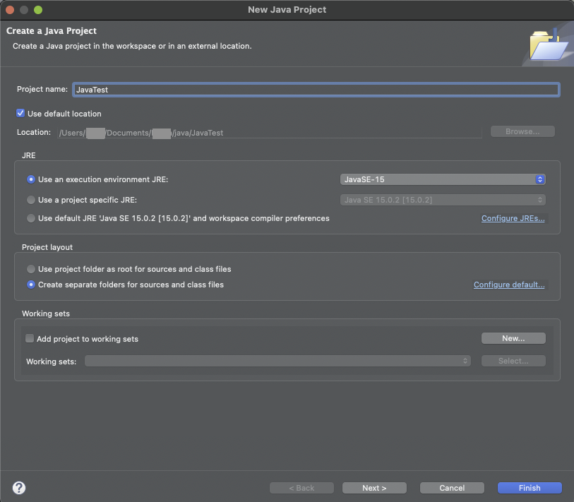 설치는 완료되었으니 위 이미지에 표시된 Create a Java project를 클릭합시다.