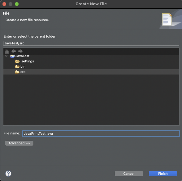 파일 이름은 JavaPrintTest.java 로 하겠습니다.