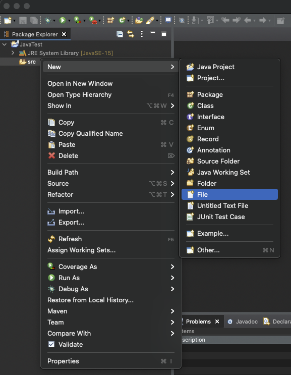 이제 테스트할 코드를 작성하기 위해 src에 우클릭하여 File을 하나 생성합시다.