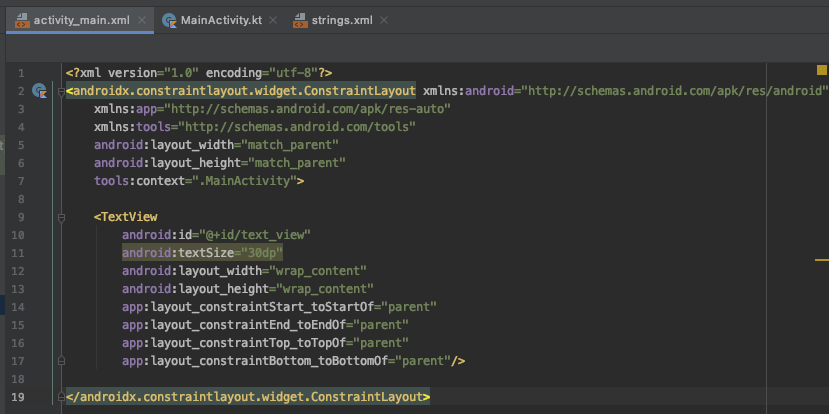 activity_main.xml 파일 내에서 텍스트를 보여줄 TextView를 위처럼 만들어둡시다.