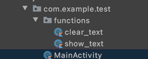 또한 한가지 주의할 점은 com.example.test.functions.clear_text()를 보면 마치 functions package에 있는 clear_text.kt 파일을 의미하는 것 같지만 아닙니다. 파일명은 무시되고 clear_text.kt 파일에 있는 clear_text class를 의미한다는 것을 알아둡시다.