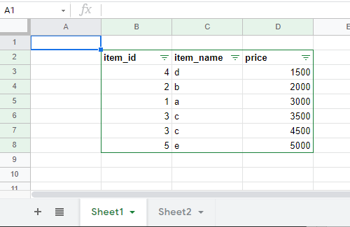 Script를 실행한 결과 현재 Active sheet인 Sheet1의 B2:D8 범위에 filter가 생긴 것을 볼 수 있습니다.