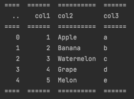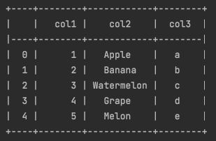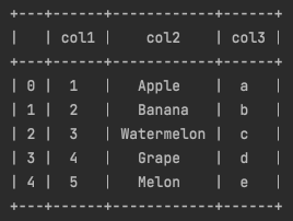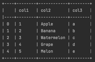 위 예시는 psql format으로 dataframe을 print한 것입니다.