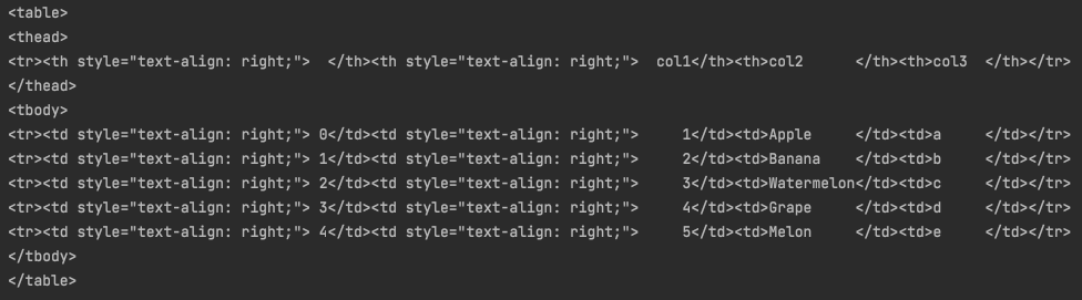 이렇게 dataframe을 html에서 사용하는 table tag로 구성해줄 수도 있습니다.