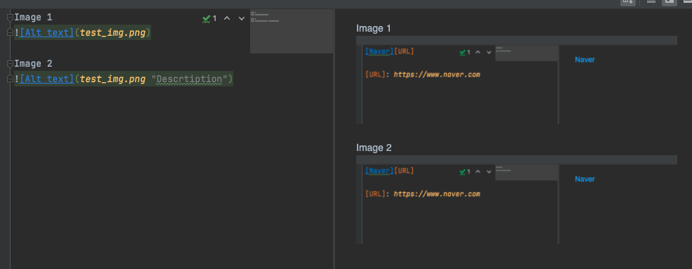 주의할 것은 [Link name][URL] 이 적힌 라인과 [URL]: ~~이 적힌 라인은 서로 한칸 띄워져야 제대로 작동합니다.