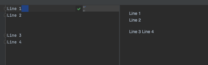 Line 1, Line 2처럼 바꿈을 할 line의 끝에 3칸의 공백(스페이스 세번)을 줘야 줄바꿈이 됩니다.