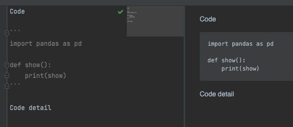 따라서 위처럼 문장 앞에 탭이 있는 모든 줄이 Code Block으로 묶여서 보이게됩니다.