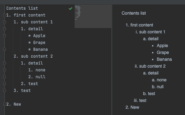 따라서 왼쪽편을 보면 1번부터 3번까지 들여쓰기가 되며 목록으로 인식된 것을 볼 수 있습니다.