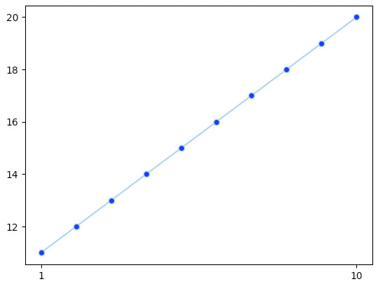 즉, xticks에 명시된 숫자들만 x축에 표시해주겠다 라는 의미로 보면 됩니다.