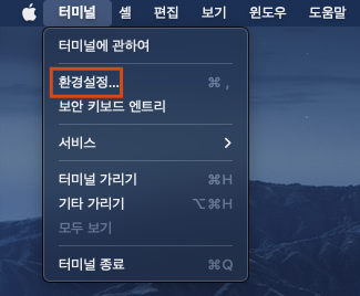 그런 경우 terminal 환경설정으로 진입한 후