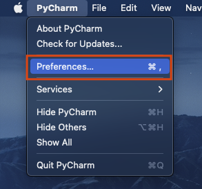 Pycharm 설정(Preferences)으로 들어갑시다.