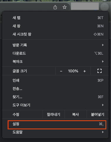 Chrome을 실행한 후 우측 상단의 ... 버튼을 클릭하여 설정으로 이동합시다.