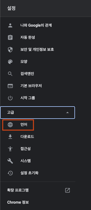 Chrome의 기본 언어를 설정해봅시다.