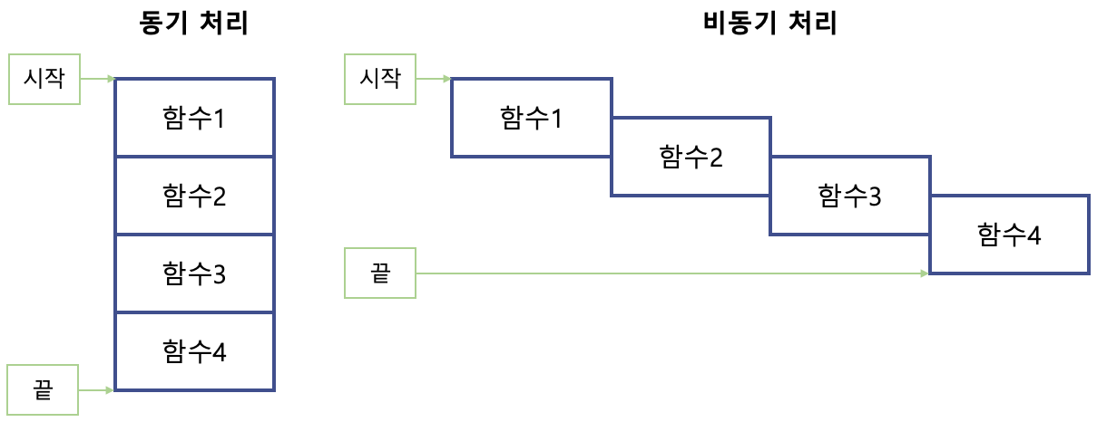 비동기 처리에서는 함수1이 완전히 종료되지 않았는데 함수2가 동시에 실행되는 경우가 존재할 수 있죠.