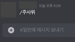 즉, discord 채널에서 bot을 이용할 명령어는 /주사위, /시간 등 슬래쉬(/)로 시작하는 문자를 적어야 한다는 의미입니다.