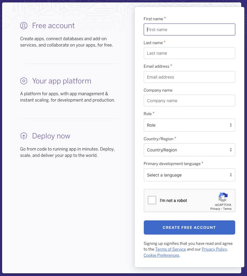 Heroku 사이트에 접속해서 로그인 또는 계정이 없다면 Sign up 버튼을 눌러서 회원가입을 해줍시다.