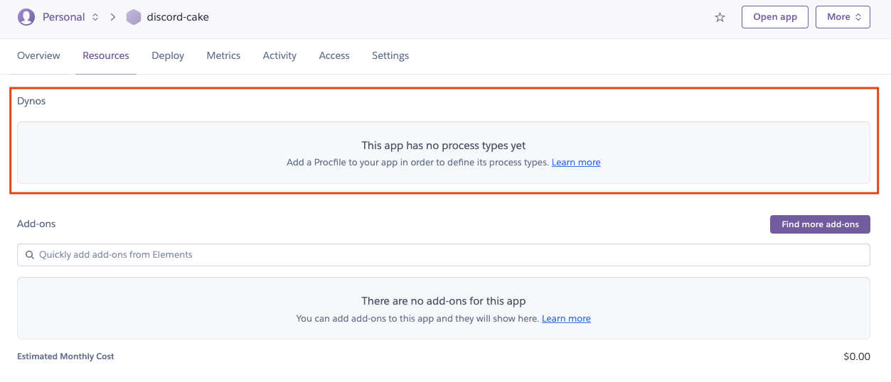 이제 다시 생성한 Heroku app의 Resources 탭으로 갑시다.