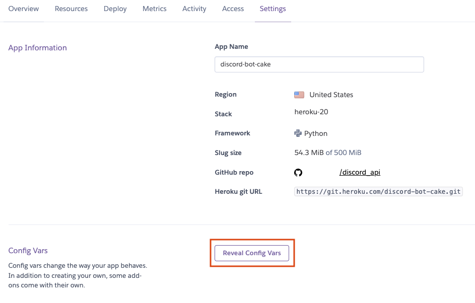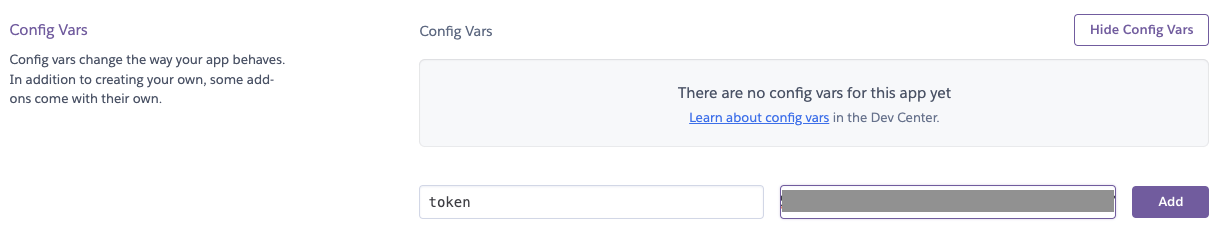 Reveal Config Vars 버튼을 누릅시다.