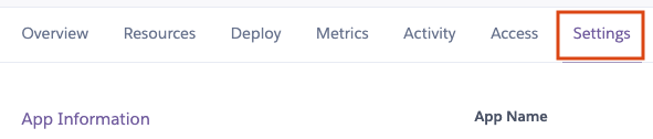사용할 언어가 python이라는 것을 설정해주기 위해 app을 클릭해서 Settings 버튼을 누릅시다.