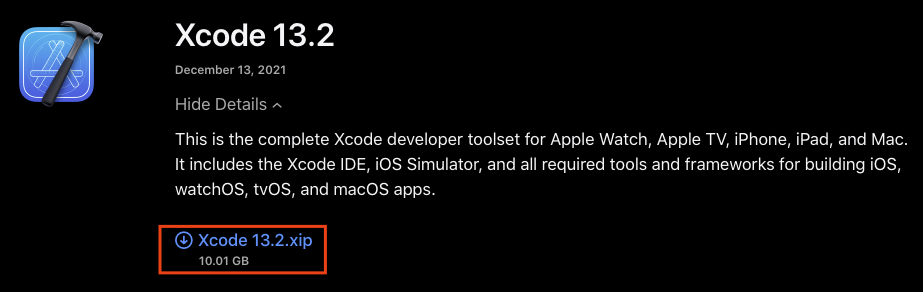 Xcode 13.2.xip 를 클릭합시다.