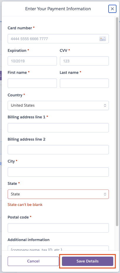 자신의 신용카드 정보를 입력해주고 Save Details 버튼을 눌러줍니다.