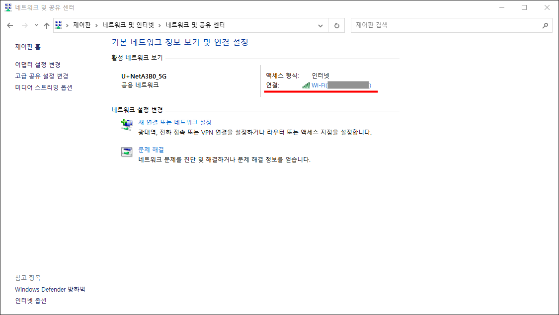 제어판 -> 네트워크 및 인터넷 -> 네트워크 및 공유센터를 들어갑니다.