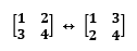 위처럼 대각선을 기준으로 행렬 속의 숫자들을 대칭해서 이동시키면 됩니다.