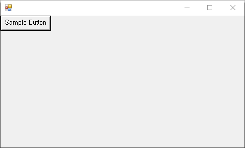 버튼이 Window에 생성되었고, 버튼에 Sample Button이라는 텍스트가 떠있는걸 볼 수 있죠.