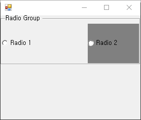 위 코드를 실행한 결과를 보면 Radio Button 2의 배경이 회색으로 된 것을 볼 수 있습니다.