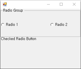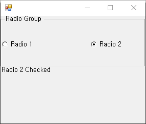 위 부분에서 radio_btn_1의 Checked 옵션을 true로 설정했기 때문에 Radio 1이 체크된 상태로 Window가 띄워진 것입니다.