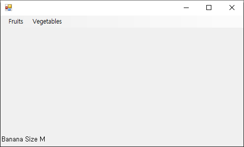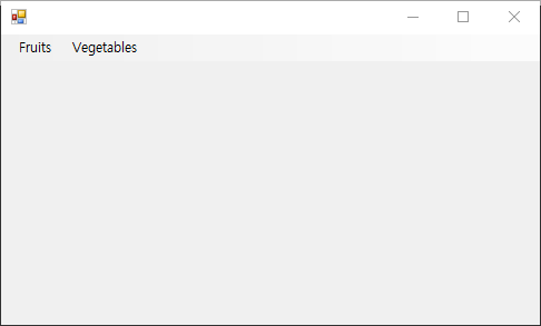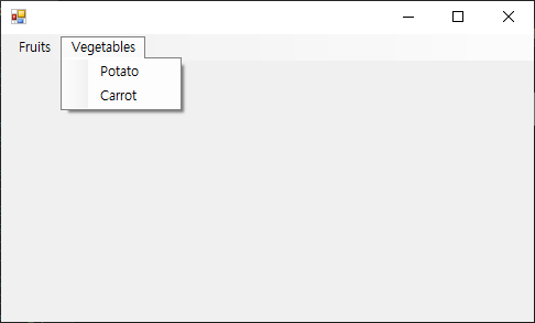 그리고 이렇게 생성된 드롭다운을 가진 Vegetables 메뉴(menu_2)를 ms.Items.Add method를 이용하여 Menu Strip에 추가하는것이죠.