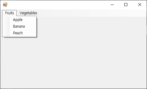 여기에는 그냥 ms.Items.Add("Fruits")의 형태처럼 단순히 텍스트를 전달해도 메뉴가 구성됩니다.