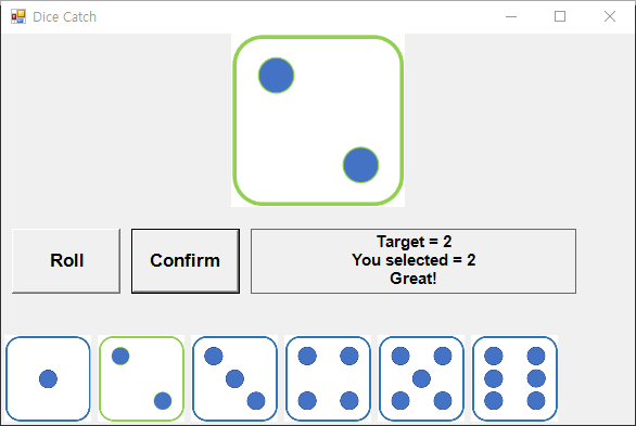 lbl_result.Text = "Target is set.\nChoose dice and click confirm button.";