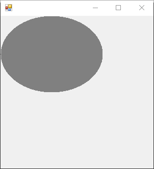 브러쉬는 SolidBrush를 사용했습니다. SolidBrush는 인자로 Color 객체를 받는데 저는 Gray라고 했기 때문에 회색 타원이 그려졌습니다.