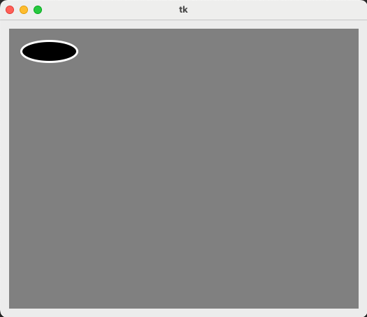- canvas.create_oval(20, 20, 100, 50, fill='black', outline='white', width=3)