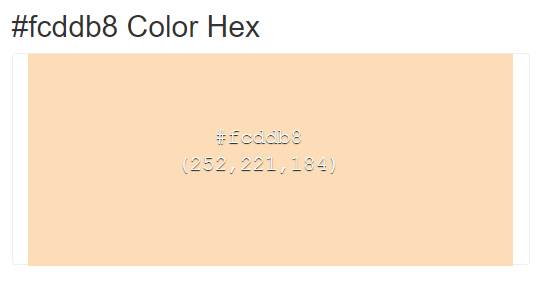 위 코드에서 생성된 색상인 #fcddb8 를 hex color 사이트에서 검색해보면 아래와같이 살색이라는 것을 알 수 있습니다.