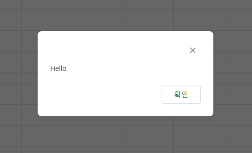 하지만 원본 스프레드시트로 옮겨가보면 Hello라고 쓰여진 메세지 박스가 띄워진 것을 볼 수 있습니다.