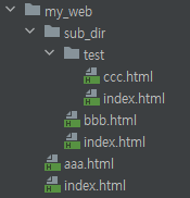 sub_dir 폴더 안에는 index.html, bbb.html과 test 폴더가 있습니다.