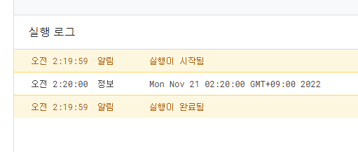 실행 로그를 보면 위같이 현재 날짜와 시간, 요일에 대한 정보가 출력됩니다.