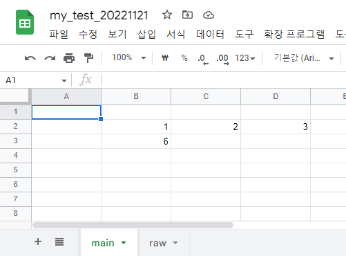 my_test라는 이름이었던 spreadsheet 파일이 my_test_20221121로 바뀌었습니다.