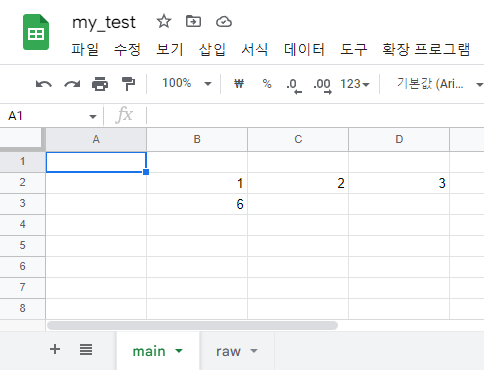 위 이미지를 보면 my_test라는 spreadsheet 파일이 있습니다.