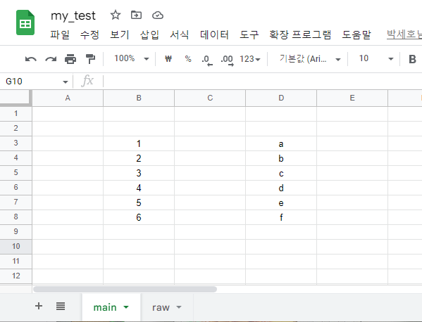 다시 main 시트에 있는 데이터를 위처럼 되돌렸습니다.