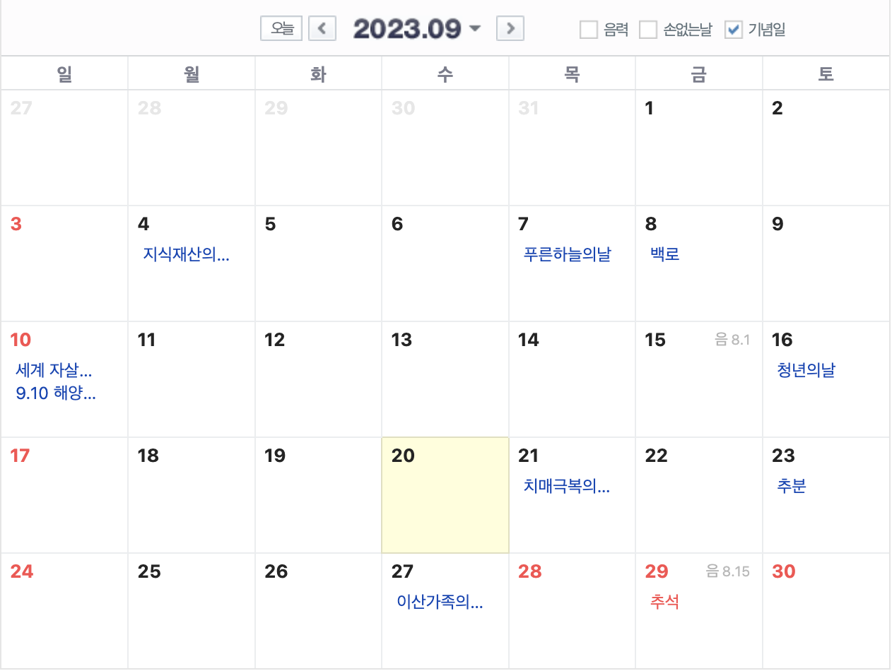 2023년 9월 달력을 보면 2023-09-20 이후 가장 가까운 금요일 2023-09-22입니다.